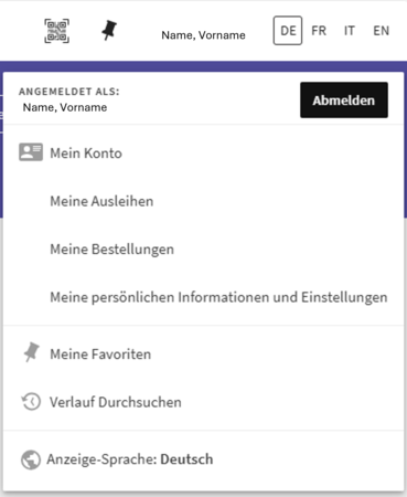 - Ihre Ausleihen und Vormerkungen von Bibliotheken im swisscovery-Netzwerk anzeigen und kontrollieren.