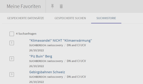 Die Suchanfragen der aktuellen Sitzung werden in Ihren Favoriten unter «Suchhistorie» aufgezeichnet.