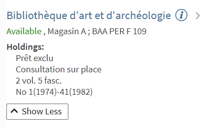 Right under the name of the library, the holding information of journals and multivolume works are displayed.