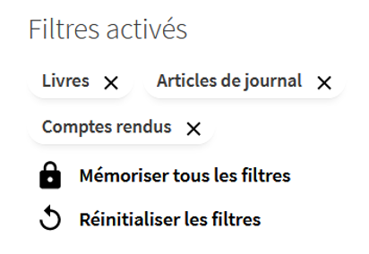 Pour supprimer un filtre, cliquez sur la croix X située à côté du terme. «Réinitialiser les filtres» permet de supprimer tous les filtres.