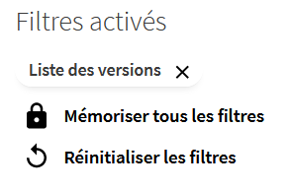 Vous pouvez revenir à la liste des résultats en fermant la liste des versions dans «Filtres activés».
