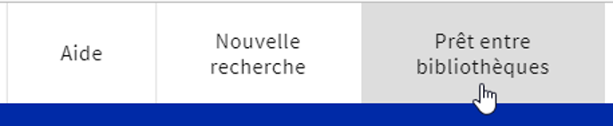 Si aucune option de demande ou de prêt n’est disponible, utilisez le formulaire suivant dans l’en-tête de la page d’accueil pour déposer une demande de prêt entre bibliothèques. La demande peut faire l’objet de frais supplémentaires.