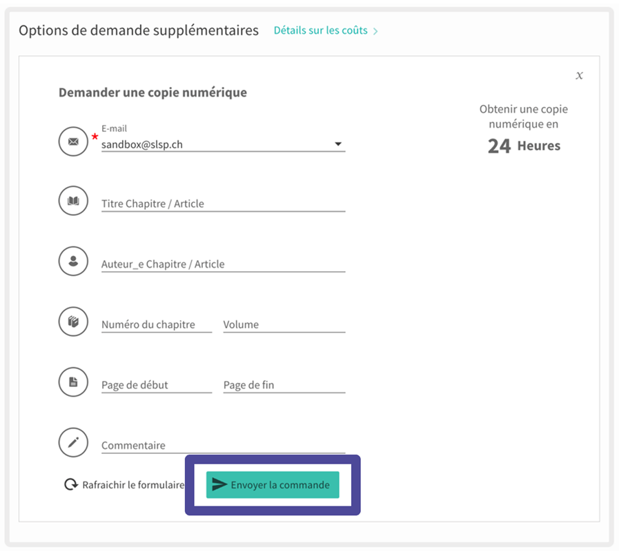 Remplissez le formulaire avec les détails sur le chapitre ou l’article dont vous avez besoin et cliquez sur « Envoyer la commande » :
