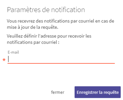Lors de l'enregistrement de la requête, un message apparaît en haut de la page vous permettant de recevoir des notifications par e-mail lorsque la requête est mise à jour. Cliquez sur ce message pour activer les notifications.