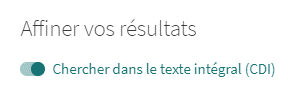 Le Central Discovery Index (CDI) est un index de recherche et constitue donc la base élémentaire des moteurs de recherche basés sur les index tels que Google par exemple les emploie. Un index de recherche est en quelque sorte une (très) longue liste de tous les contenus à parcourir. Outre les informations descriptives, telles que le titre ou l'auteur·e d'une œuvre, ce contenu peut également inclure le texte intégral de livres entiers, de bases de données ou de revues. Dans les faits, c’est toujours cette liste que le moteur de recherche parcourt directement, et non la source de données effective. Cela offre d’énormes avantages, notamment celui de pouvoir effectuer rapidement une recherche dans l’ensemble du répertoire de données, même s’il existe des milliards d’entrées répertoriées. Cela permet aussi de trier ces résultats par «pertinence» – les résultats où les termes recherchés apparaissant plus fréquemment ou en bonne position (p. ex. dans le titre) sont affichés avant d’autres ayant moins de concordances. Le Central Discovery Index est un index de recherche réalisé par le prestataire Ex Libris / ProQuest, qui contient notamment des articles complets de revues spécialisées, des chapitres et des critiques de livres, des données de recherche, mais aussi de nombreuses vidéos et documents audio. Son volume dépasse largement les 3 milliards d’entrées. Les différentes bibliothèques swisscovery peuvent décider lesquels de ces contenus elles souhaitent intégrer dans la recherche de swisscovery, par activation individuelle. Quand vous effectuez une recherche dans le CDI cette option sera affichée en haut de la barre de recherche à gauche “Affiner vos résultats”: