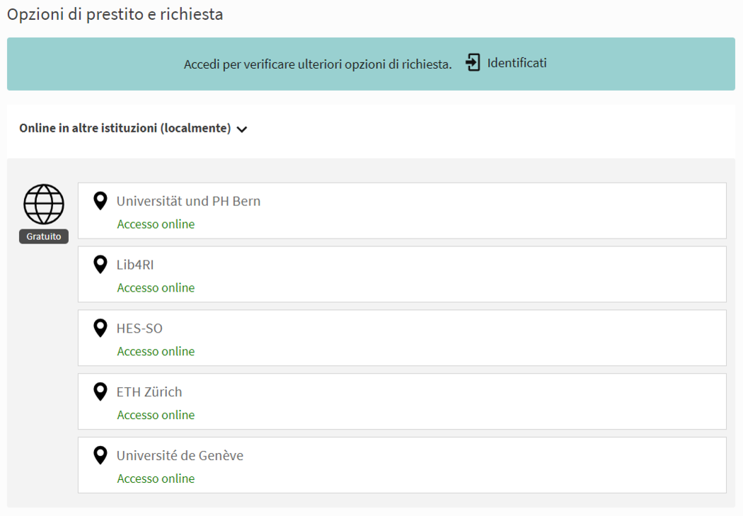 Le biblioteche che offrono l'accesso a risorse online sono visualizzate sotto localizzazione.