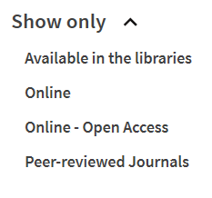 With the aid of filters, you can narrow the search down to freely accessible (Online - Open Access) or all online documents (Online).
