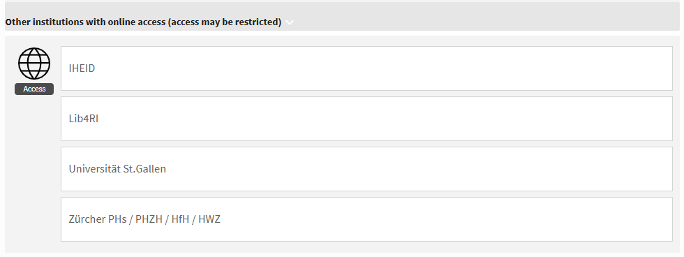 Which libraries offer access to an online resource are displayed under "Online in other institutions (on site):