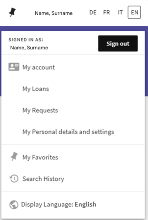 In swisscovery: click on "Sign in/Register" - select your institution - click on "Personal Account" - enter your email address and password - click on "Login"