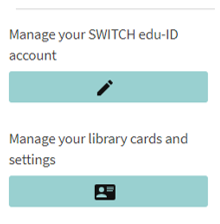 To modify your address or other information of the account go to eduid.ch/account. If you want to manage your library card numbers, please go to registration.slsp.ch