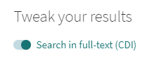 Note: By default, the system searches also in the full-text of the CDI material; to exclude this possibility and reduce the number of results, switch off “Search in full-text (CDI)”.