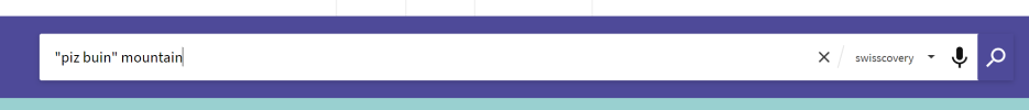 The results include documents that contain both the term "piz buin" and the aspect "mountain".